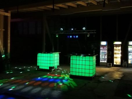 Unsere beleuchteten Party Container können über Bluetooth verbunden werden und leuchten je nach Farbwunsch mit der von Ihnen gewählte Musik zusammen im Rhythmus.